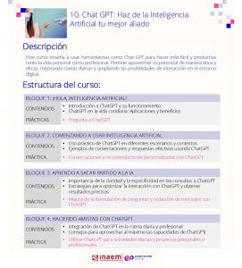 07 Nov Nuevo curso gratuito de Adaptación Digital: “ChatGPT: haz de la Inteligencia Artificial tu mejor aliado”